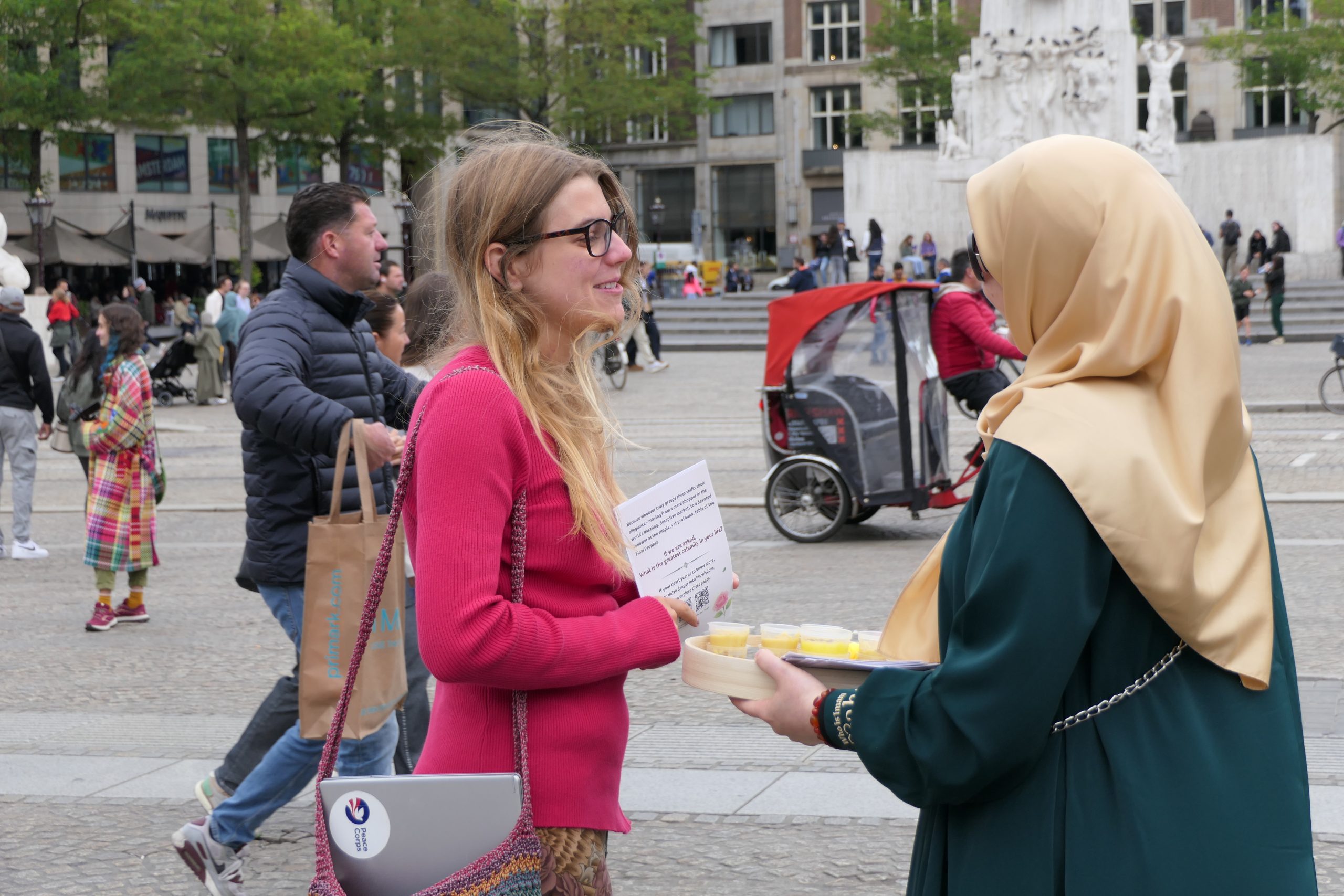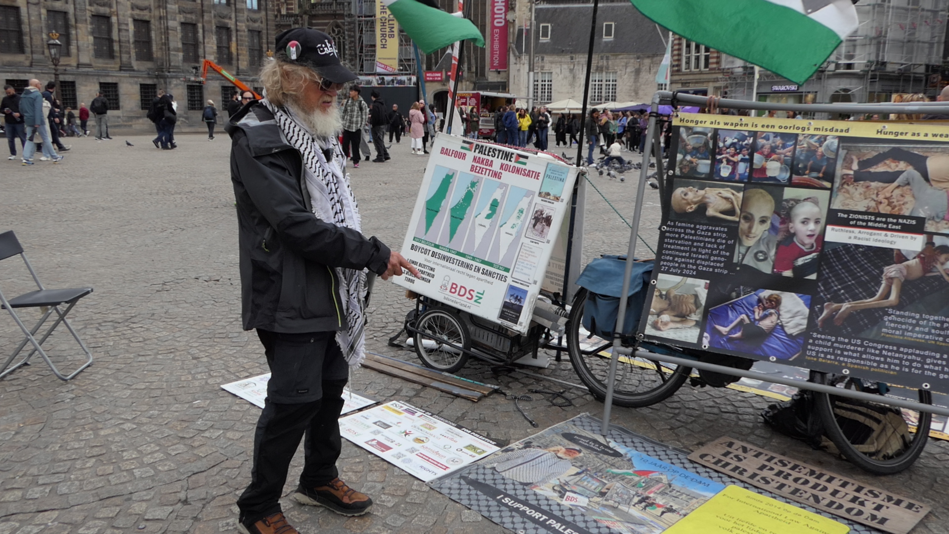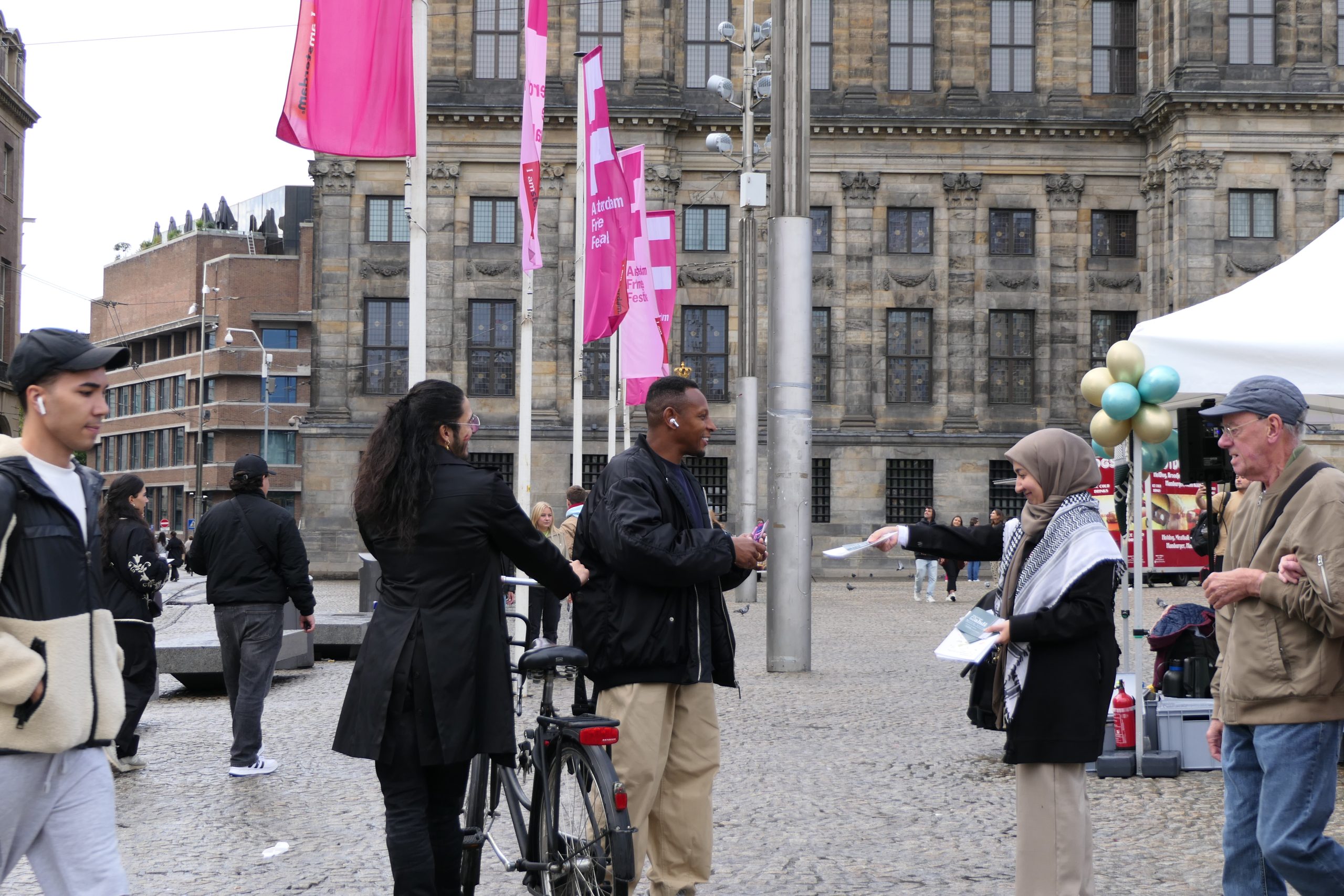 مخاطبان هلندی و بین‌المللی در میدان دام، با کنجکاوی به غرفه نزدیک می‌شدند. پرسش‌ها در ابتدا بر محوریت جنایات رخ داده متمرکز بود: «چگونه جامعه جهانی نسل‌کشی در غزه را نادیده می‌گیرد؟»
